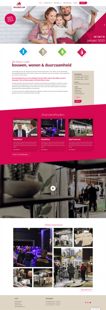 Voor Plan Effect onderhouden we diverse websites voor andere projecten zoals de Pinksterfair, Zomerfair en Crea Weekend. Nu was de website van Beurs Bouwplan aan een facelift toe. De nieuwe website straalt meer sfeer en autoriteit uit en er zit veel meer beleving in voor zowel bezoekers als standhouders.
